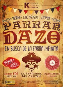 Pobre de Ustedes, La Fanfarria del Capitán y La Orquesta Informal de Rosario, se unen en esta cuarta edición del Parrandazo, en donde juntarán sus escandalosos y parranderos instrumentos para brindar un show a toda fiesta en Ciudad Cultural Konex, el viernes 11 de agosto a la medianoche.