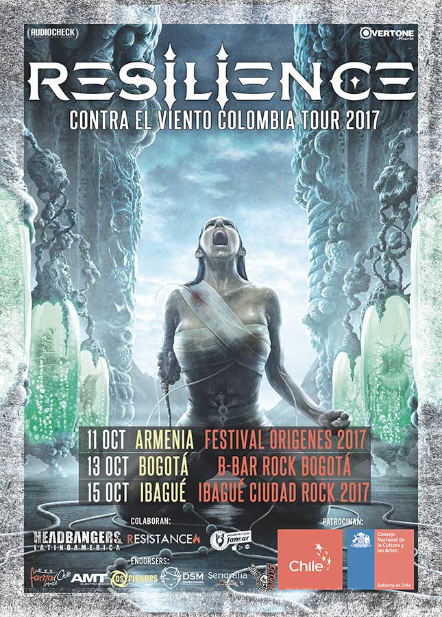 Los chilenos power metaleros de Resilience parten a Colombia a realizar su primera gira internacional, recorrido que los llevará por 3 reconocidos escenarios del país cafetero, compartiendo con bandas como American By Product de US, los legendarios Masacre y Alerta Kamarada de Colombia, Odio de Paraguay, entre otros.