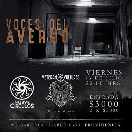 Pero Nueve Círculos no estarán solos: para el show han confirmado la presencia de la banda de Puerto Montt, VETERAN VULTURES. Trío que cultiva un poderoso rock con raíces stoner y que se encuentra promocionando su disco “Veteran”, lanzado a fines del año pasado.