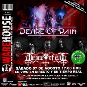 Desire Of Pain, banda de death Metal melódico, de la ciudad de Santiago, prometen un show demoledor repasando parte de su discografía, destacando su excelente trabajo lanzado el año 2018 “Immensity”.