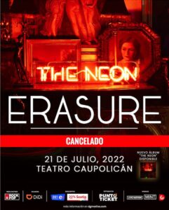 El concierto de Erasure en Chile programado para el 21 de julio de 2022 ha sido cancelado por motivos ajenos a la producción: