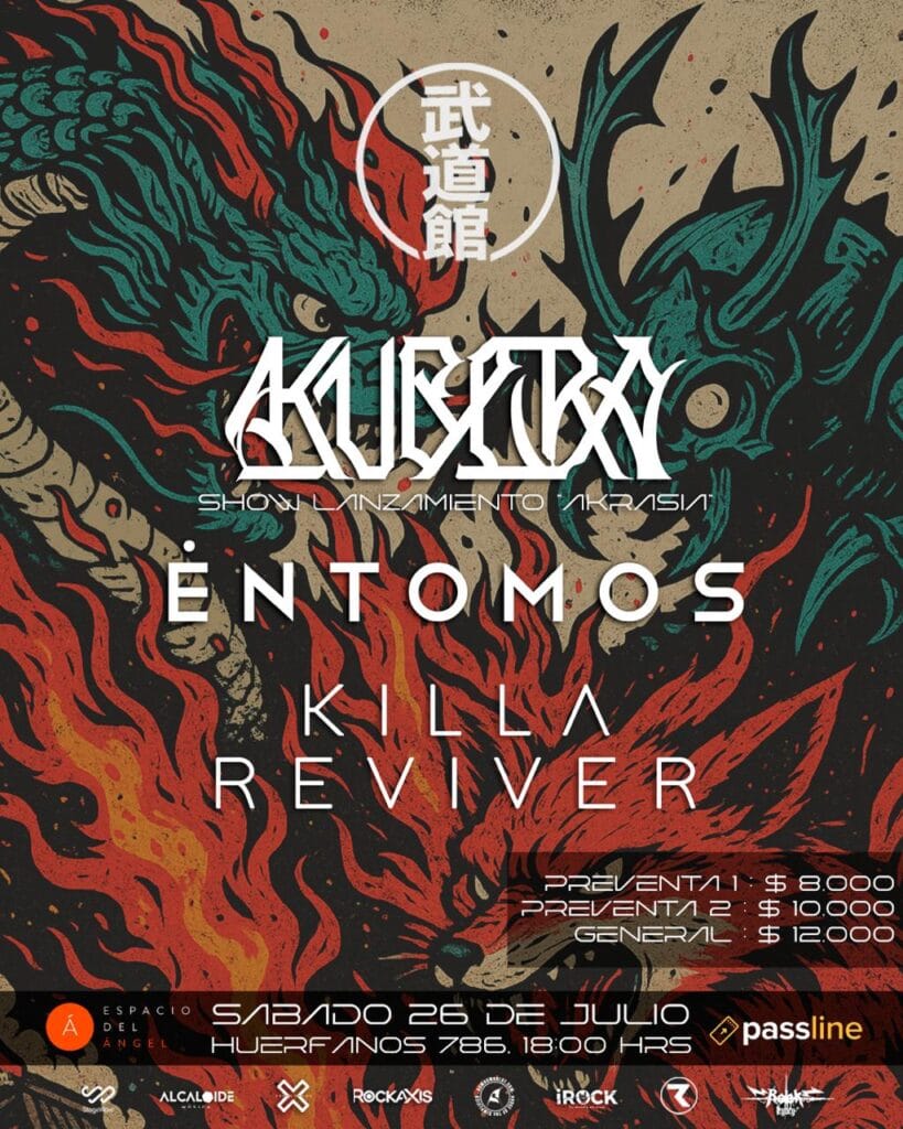 La banda santiaguina Kubera celebra el estreno de su nuevo single Akrasia con un show especial, donde compartirá escenario con dos nombres clave de la nueva escena nacional: Éntomos y Killa Reviver. La instancia marca un nuevo hito para la agrupación, que viene adelantando material de lo que será su próximo larga duración.