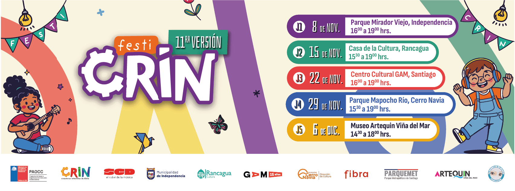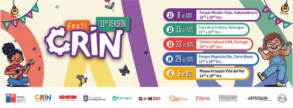 Se acerca una nueva edición del FestiCRIN, el Festival Nacional de Música para la Infancia, que se realizará en cinco sedes en las regiones de Santiago, Rancagua y Valparaíso, con una programación familiar, gratuita e inclusiva.